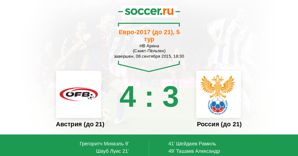 Австрия (до 21) - Россия (до 21): обзор матча 8 сентября 2015