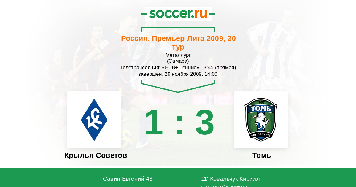 Крылья Советов - Томь: обзор матча 29 ноября 2009