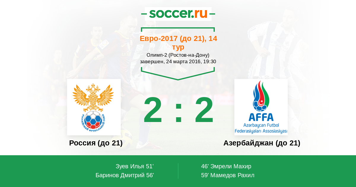 Россия (до 21) - Азербайджан (до 21): обзор матча 24 марта 2016