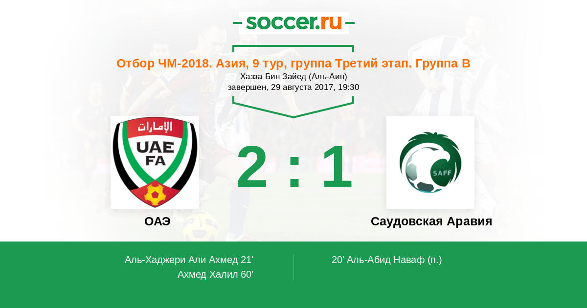 ОАЭ - Саудовская Аравия: обзор матча 29 августа 2017