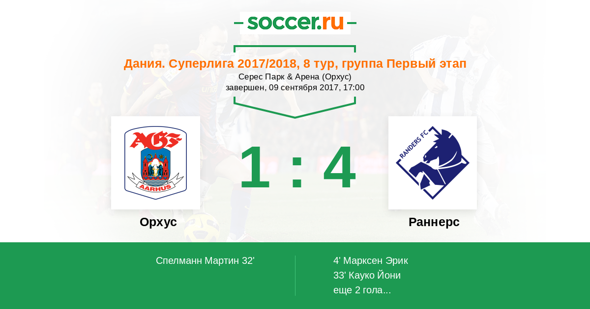 Орхус - Раннерс: обзор матча 9 сентября 2017
