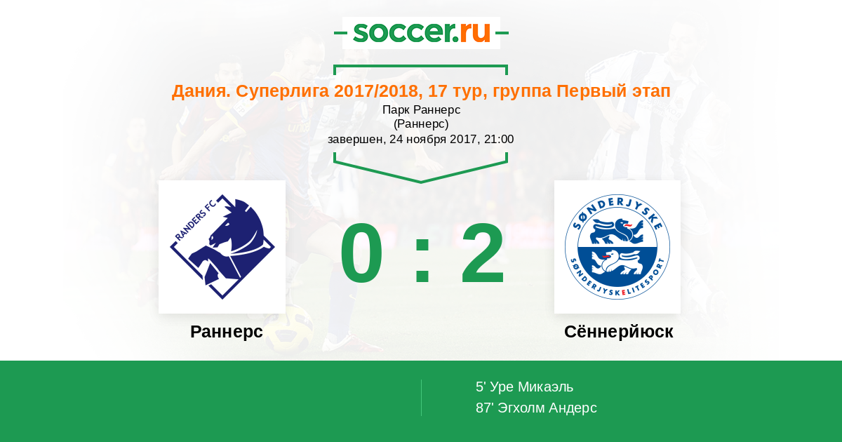 Раннерс - Сённерйюск: обзор матча 24 ноября 2017