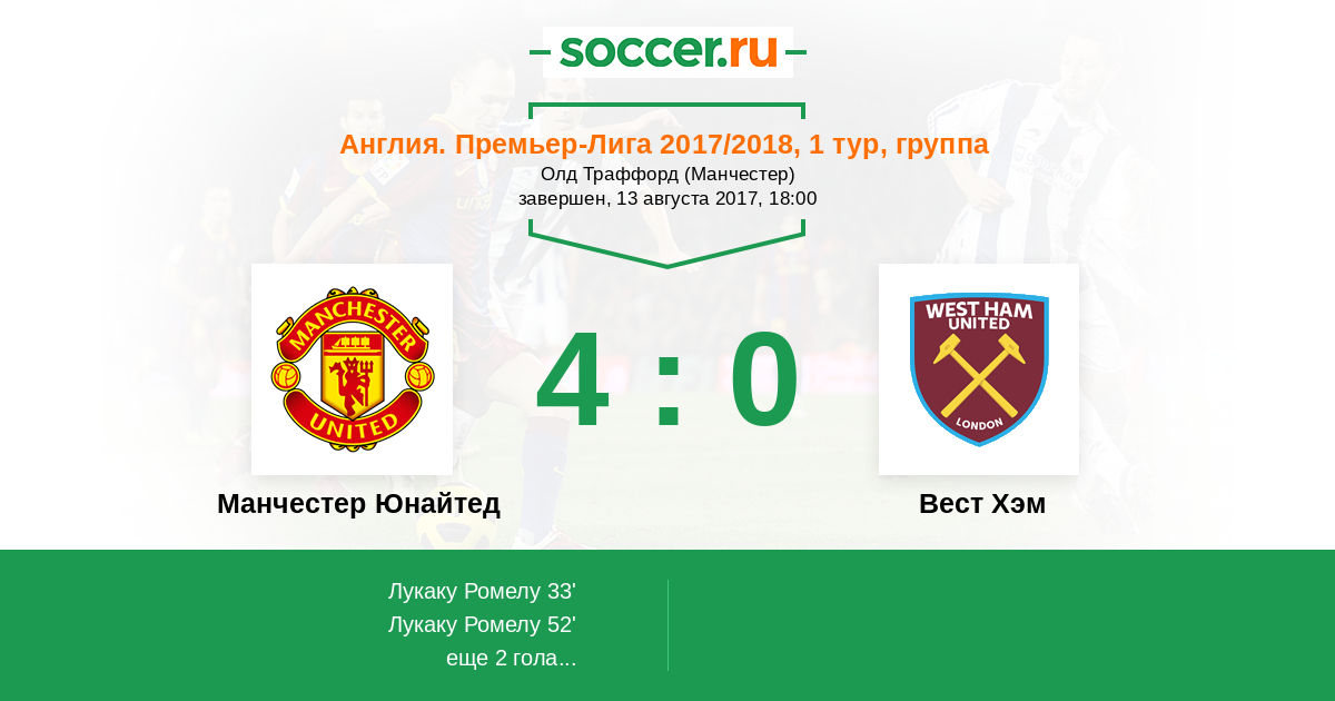 Манчестер Юнайтед - Вест Хэм: обзор матча 13 августа 2017