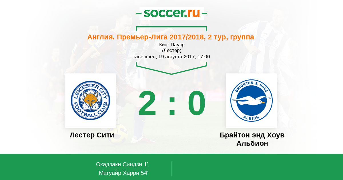 Лестер Сити - Брайтон энд Хоув Альбион: обзор матча 19 августа 2017