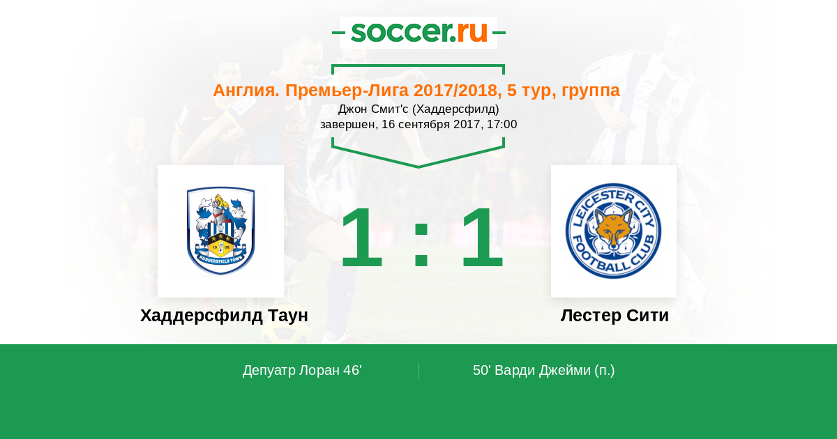 Хаддерсфилд Таун - Лестер Сити: обзор матча 16 сентября 2017