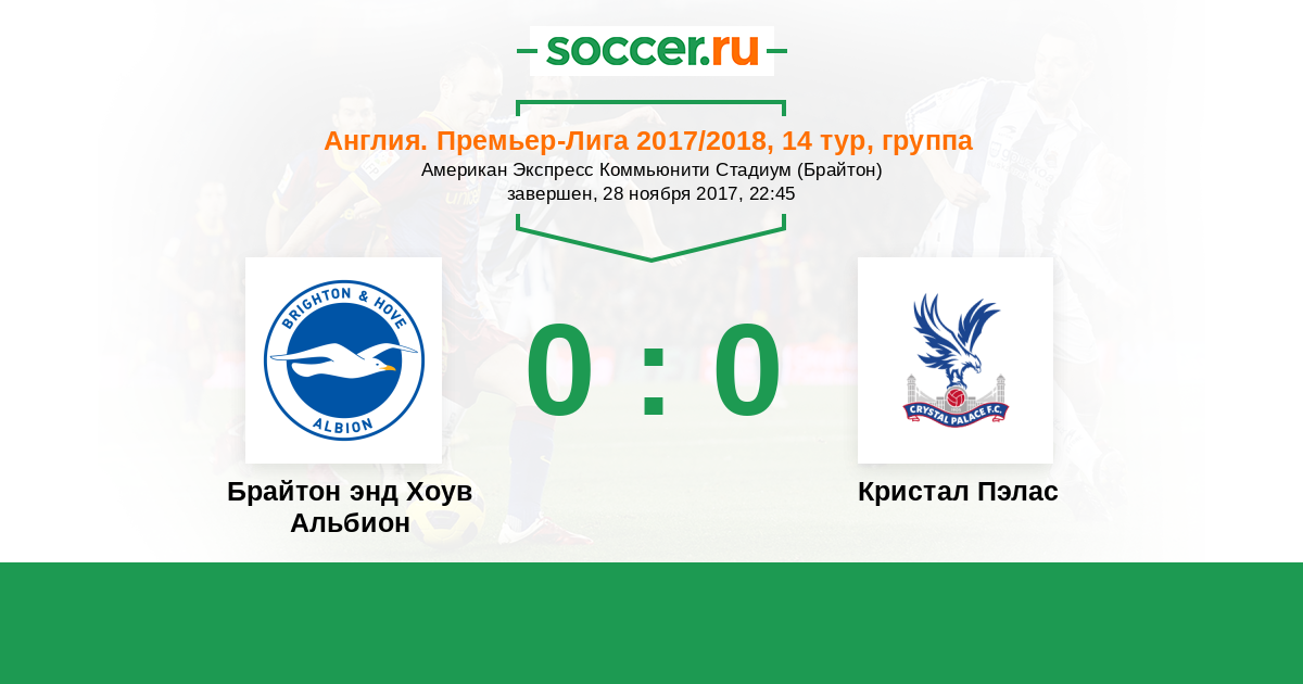 Брайтон энд Хоув Альбион - Кристал Пэлас: обзор матча 28 ноября 2017