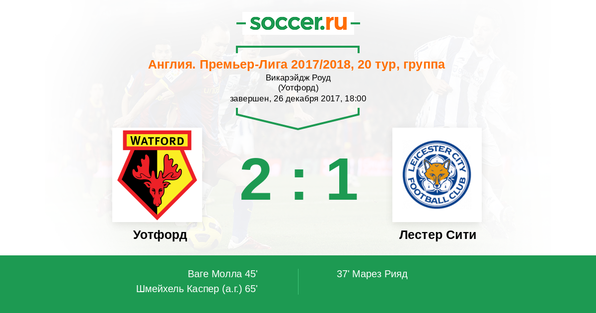 Уотфорд - Лестер Сити: обзор матча 26 декабря 2017
