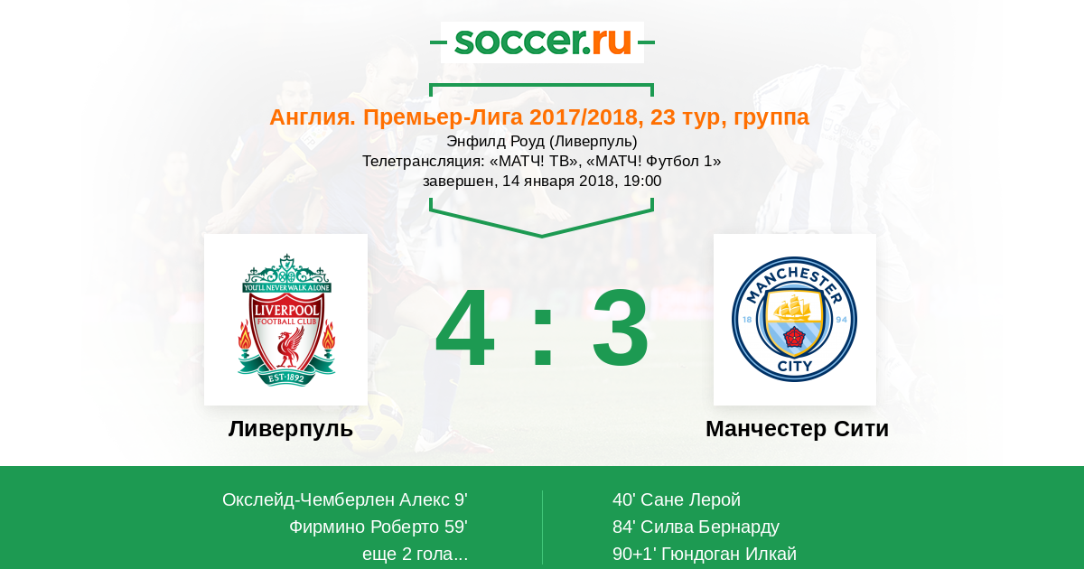 Ливерпуль - Манчестер Сити: обзор матча 14 января 2018