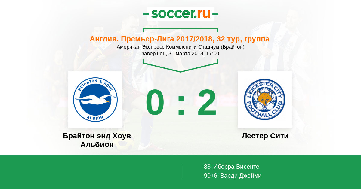 Брайтон энд Хоув Альбион - Лестер Сити: обзор матча 31 марта 2018