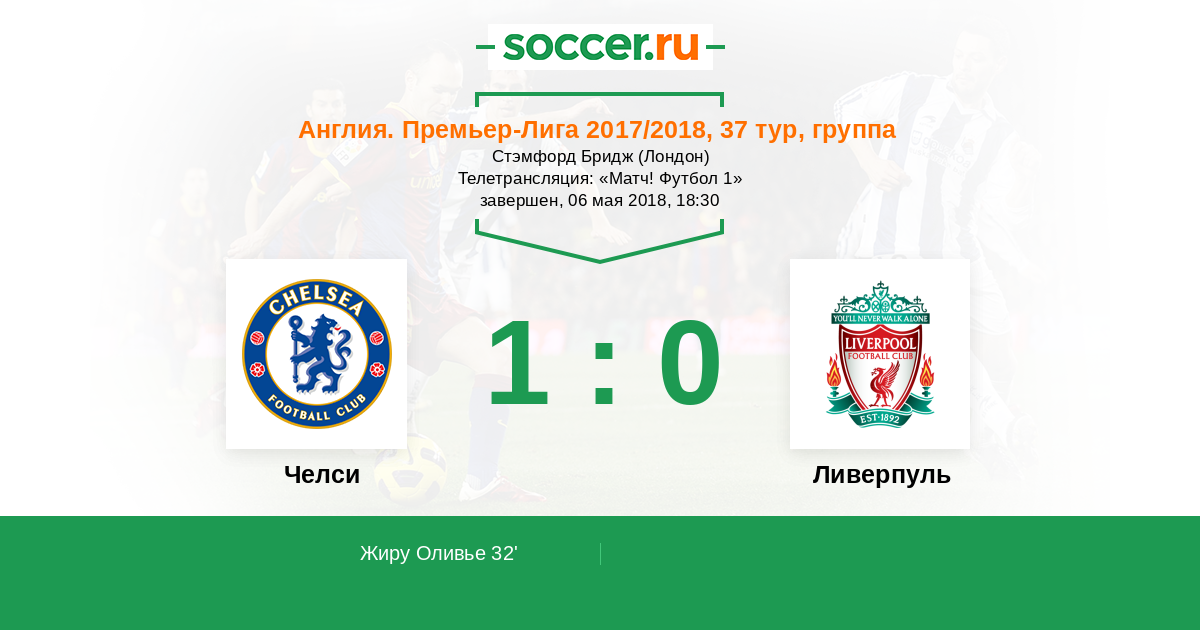 Доброго времени суток, уважаемые любители футбола! Рады приветствовать Вас на текстовой онлайн-трансляции поединка тридцать седьмого тура АПЛ, в котором "Челси" примет "Ливерпуль". Встреча пройдет в Лондоне на стадионе "Стэмфорд Бридж". А рассудит команды бригада арбитров во главе с Энтони Тэйлором.