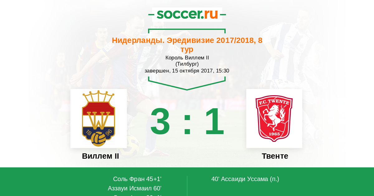Виллем II - Твенте: обзор матча 15 октября 2017