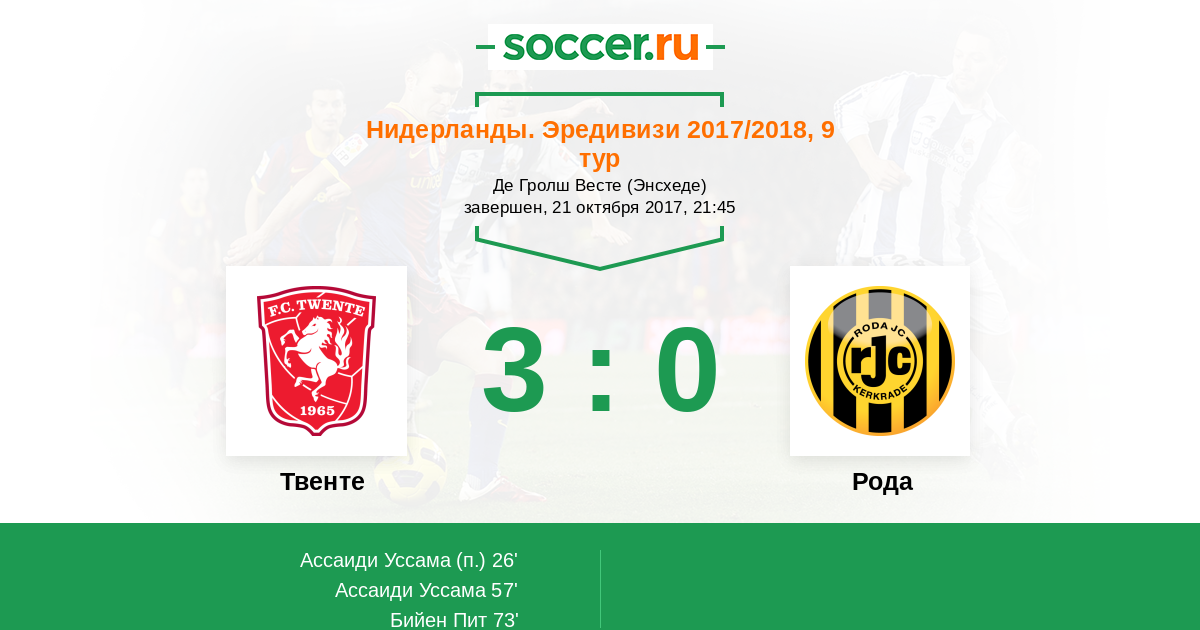 Твенте - Рода: обзор матча 21 октября 2017