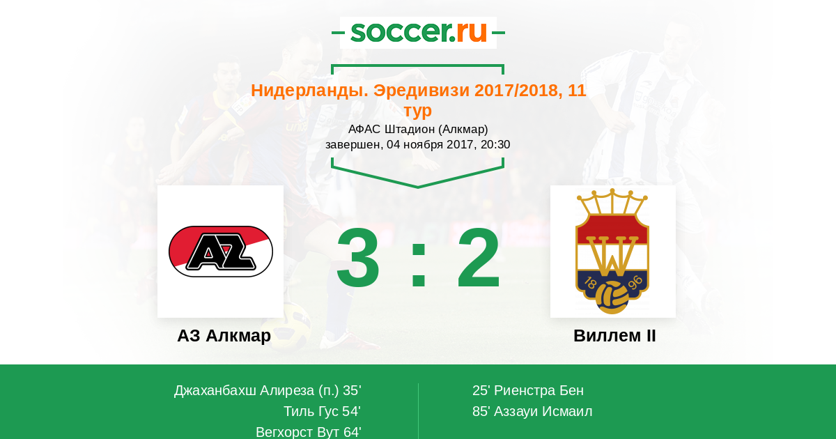 АЗ Алкмар - Виллем II: обзор матча 4 ноября 2017