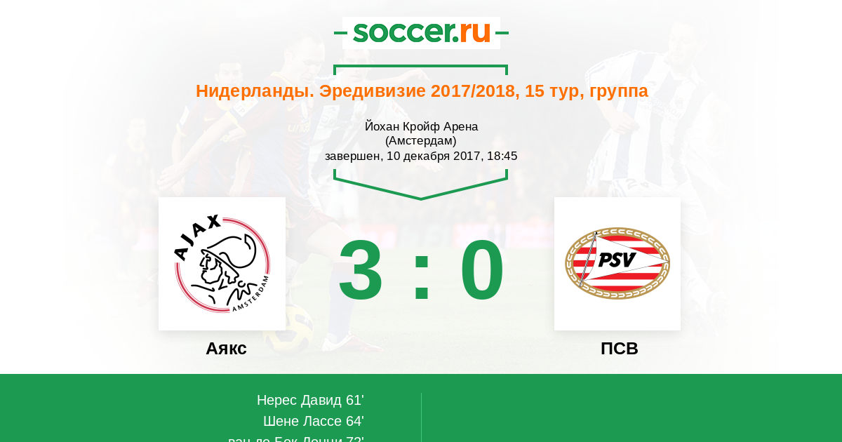 Аякс - ПСВ: обзор матча 10 декабря 2017