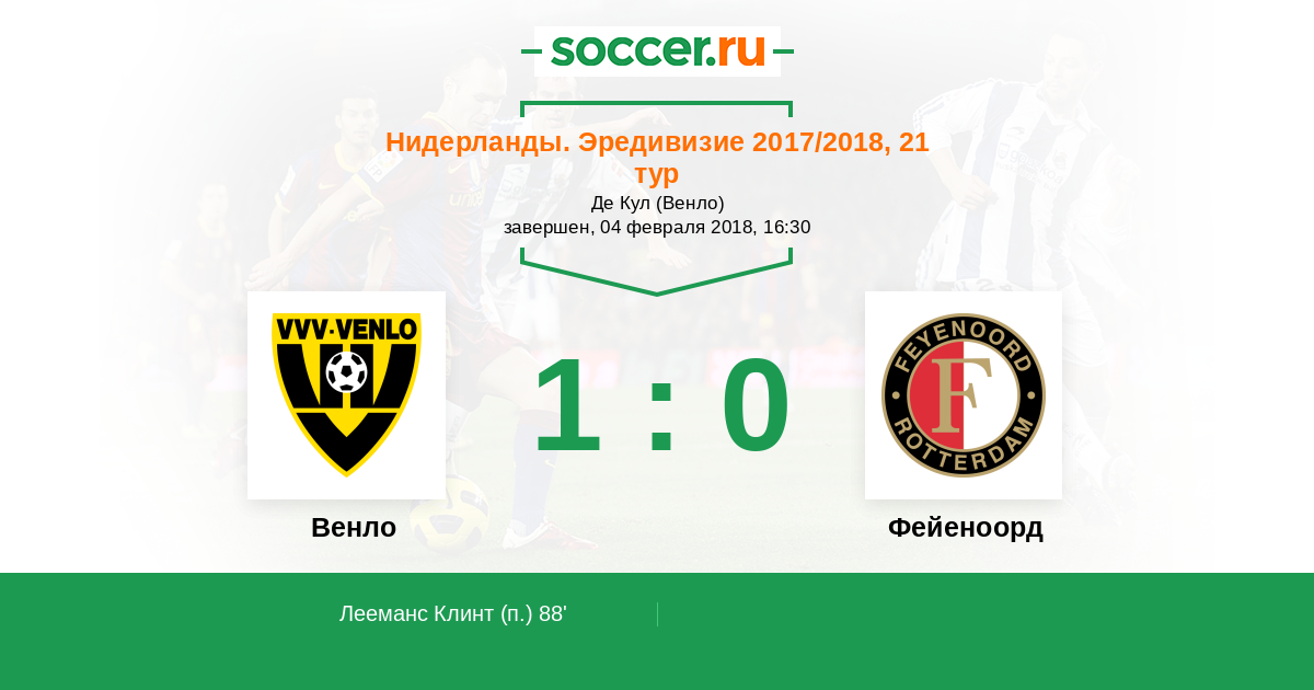 Венло - Фейеноорд: обзор матча 4 февраля 2018