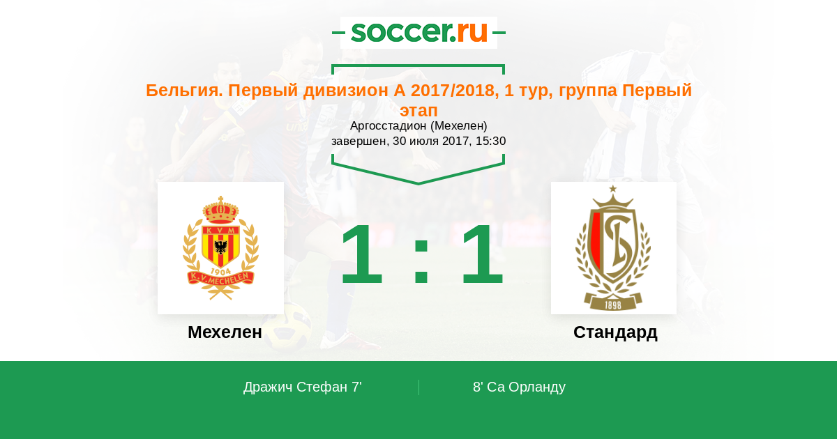 Мехелен - Стандард: обзор матча 30 июля 2017