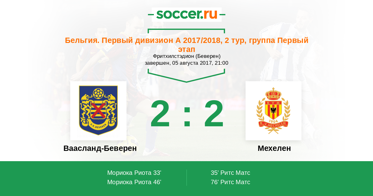 Ваасланд-Беверен - Мехелен: обзор матча 5 августа 2017