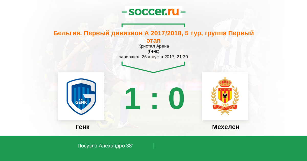 90+2' ЗаменаЛоготип ГенкПосуэло Алехандро (24, н) уходит с поля
