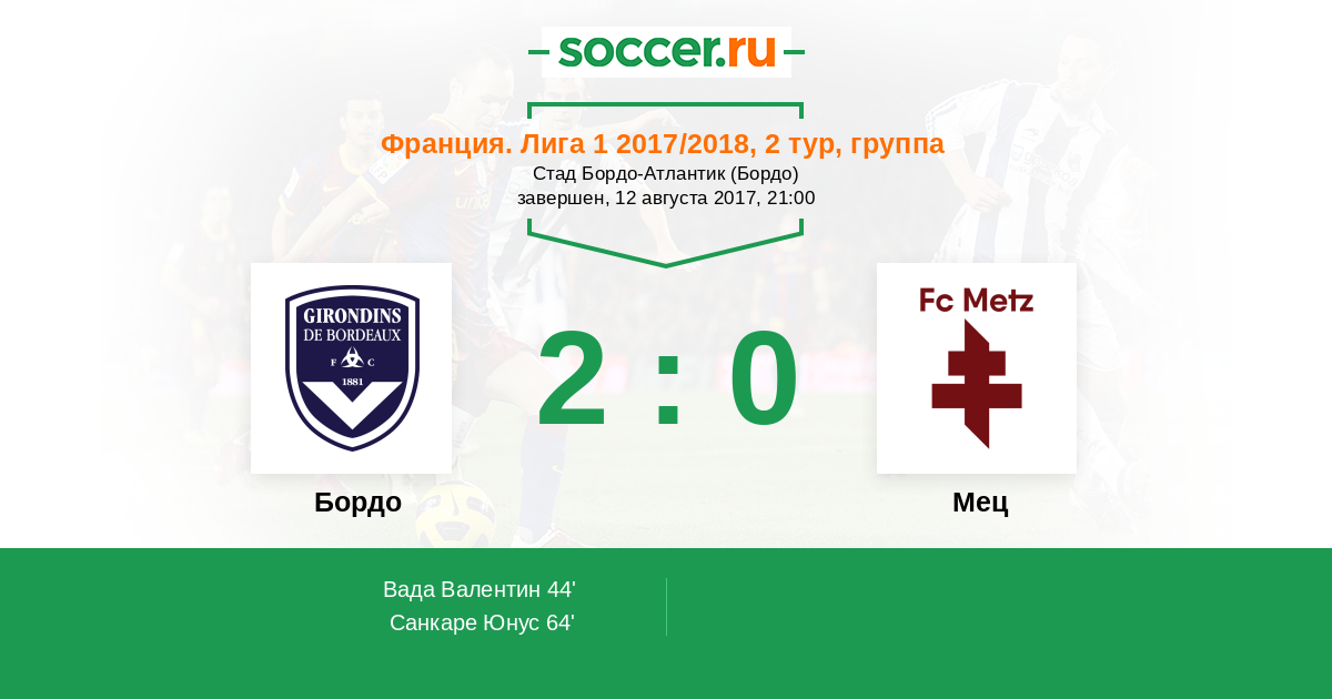 Крис Филиппс (Мец) роняет игрока соперника, и Mikael Lesage дает свисток. Бордо получает штрафной.