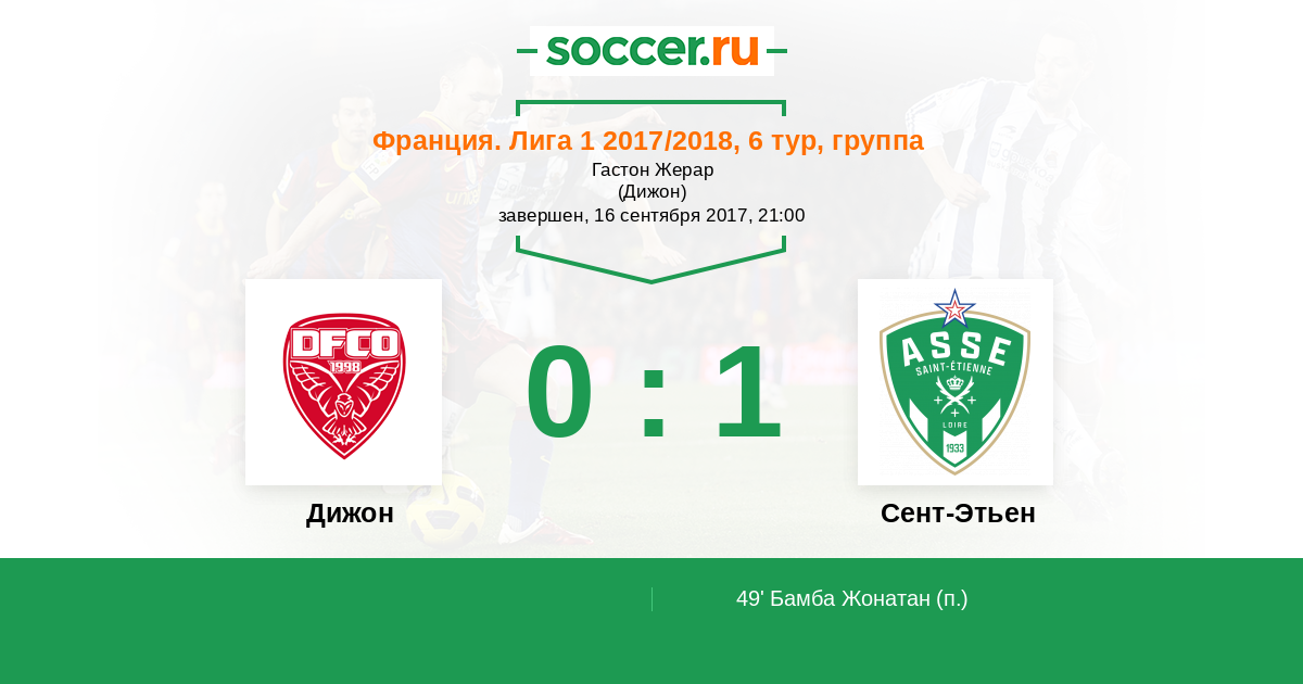 Дижон - Сент-Этьен: обзор матча 16 сентября 2017