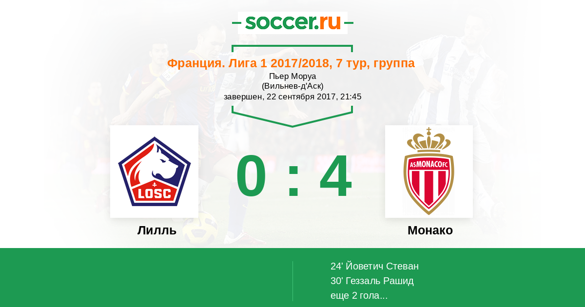 Лилль - Монако: обзор матча 22 сентября 2017
