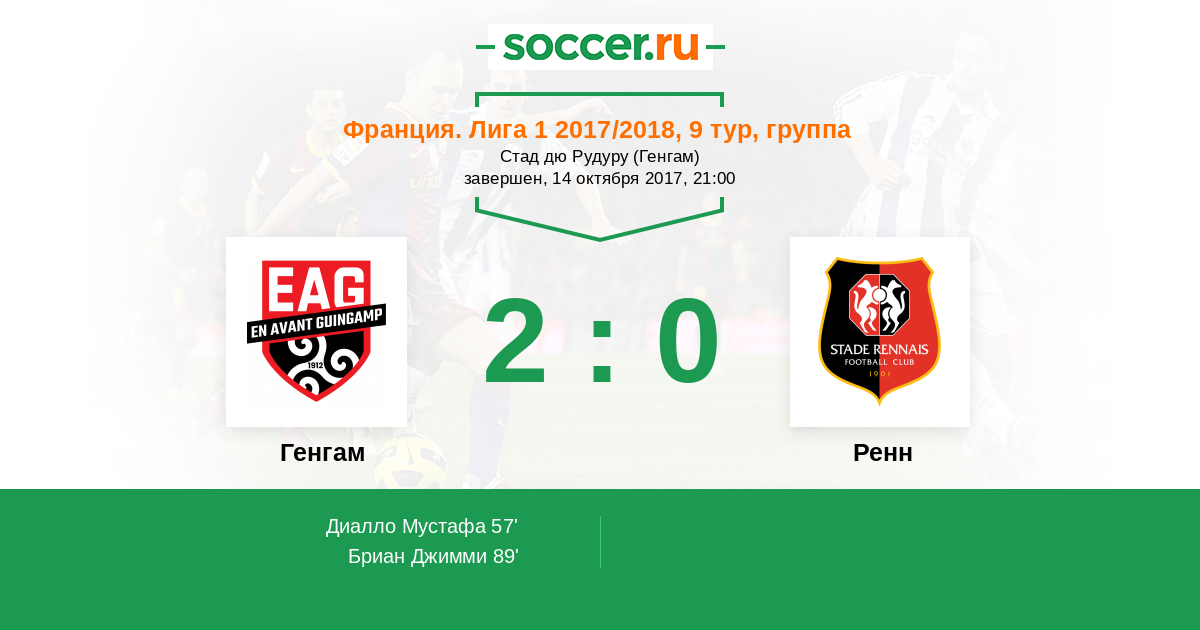 Генгам - Ренн: обзор матча 14 октября 2017