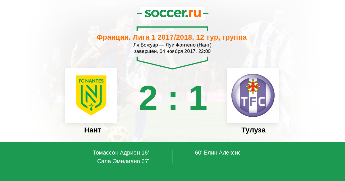 Нант - Тулуза: обзор матча 4 ноября 2017