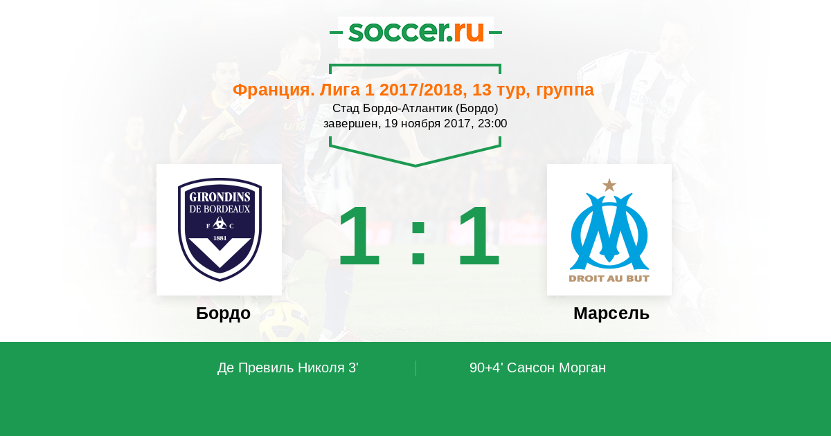 Бордо - Марсель: обзор матча 19 ноября 2017