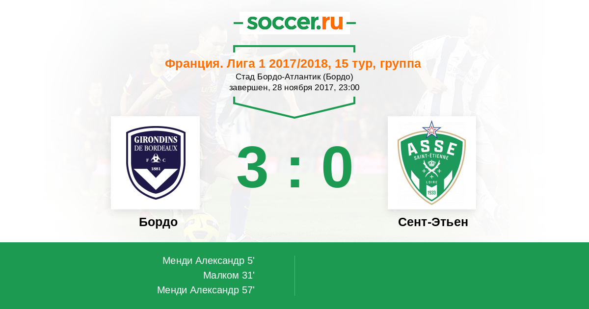 Бордо - Сент-Этьен: обзор матча 28 ноября 2017