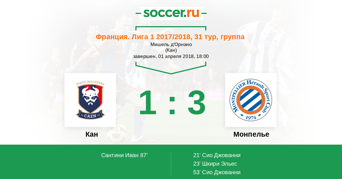 Кан - Монпелье: обзор матча 1 апреля 2018