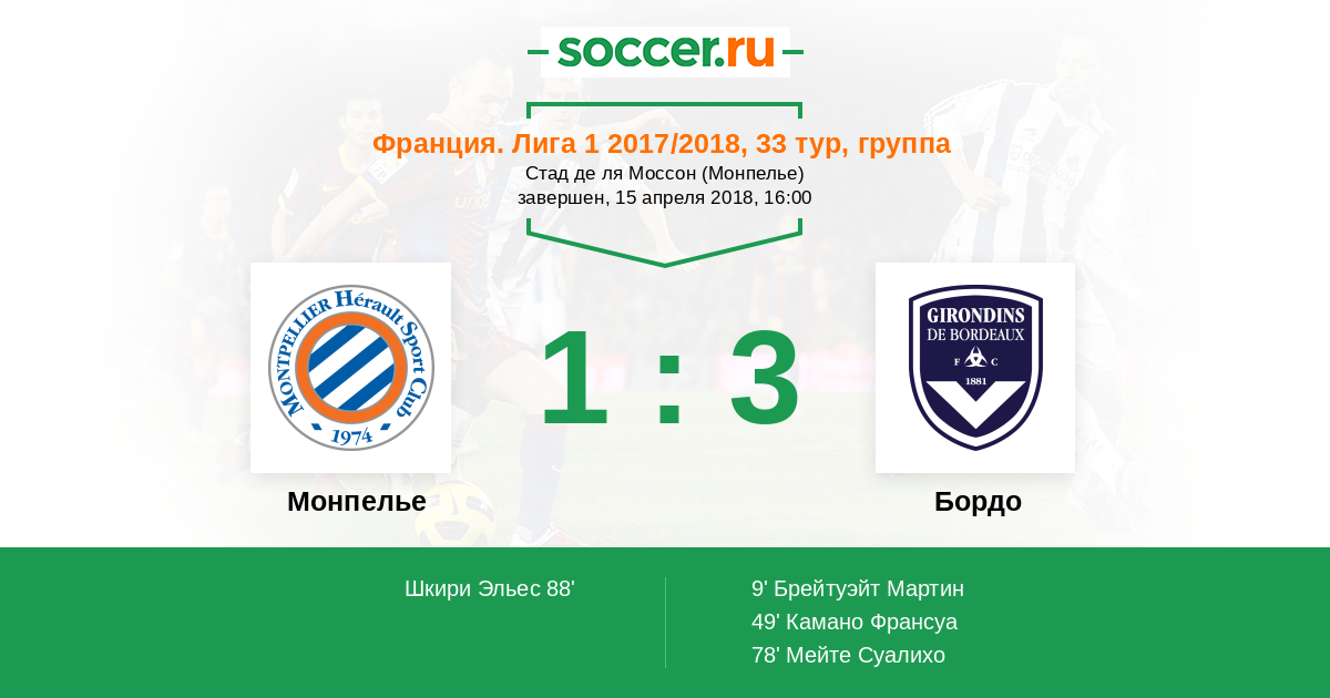 Монпелье - Бордо: обзор матча 15 апреля 2018