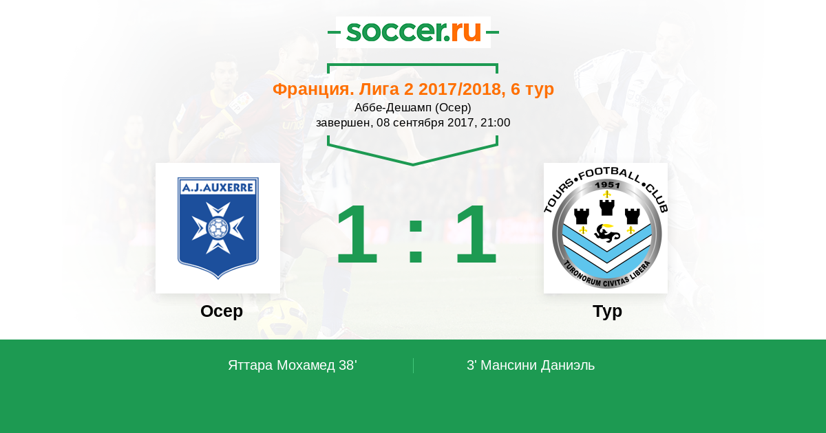 Осер - Тур: обзор матча 8 сентября 2017