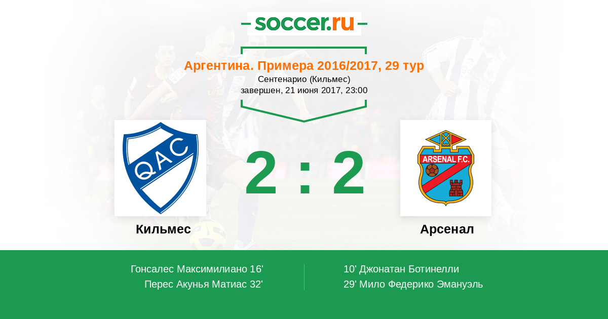 Кильмес - Арсенал: обзор матча 21 июня 2017