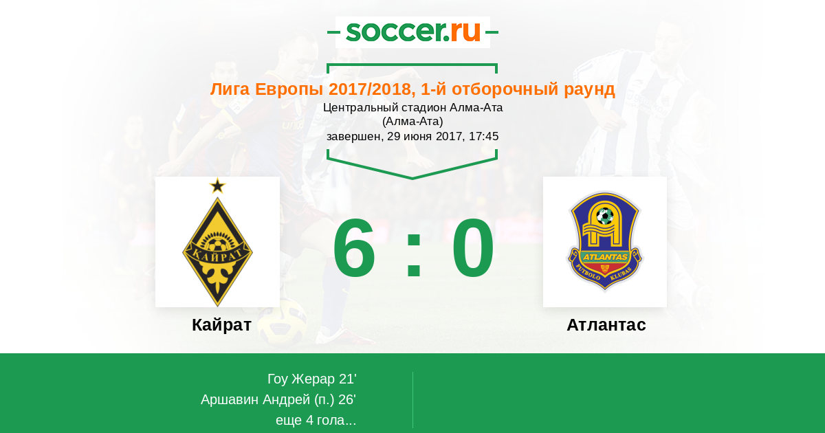 Кайрат - Атлантас: обзор матча 29 июня 2017