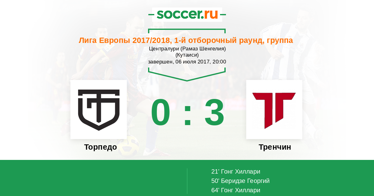 Торпедо - Тренчин: обзор матча 6 июля 2017