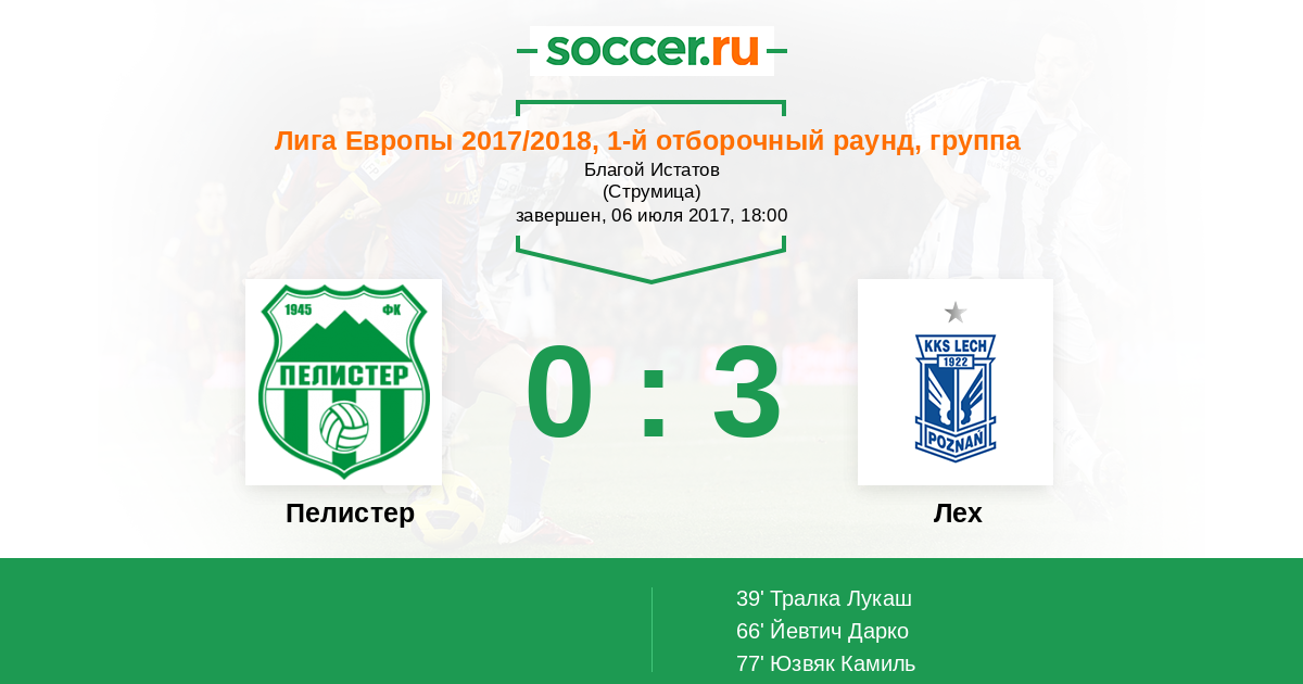 Пелистер - Лех: обзор матча 6 июля 2017