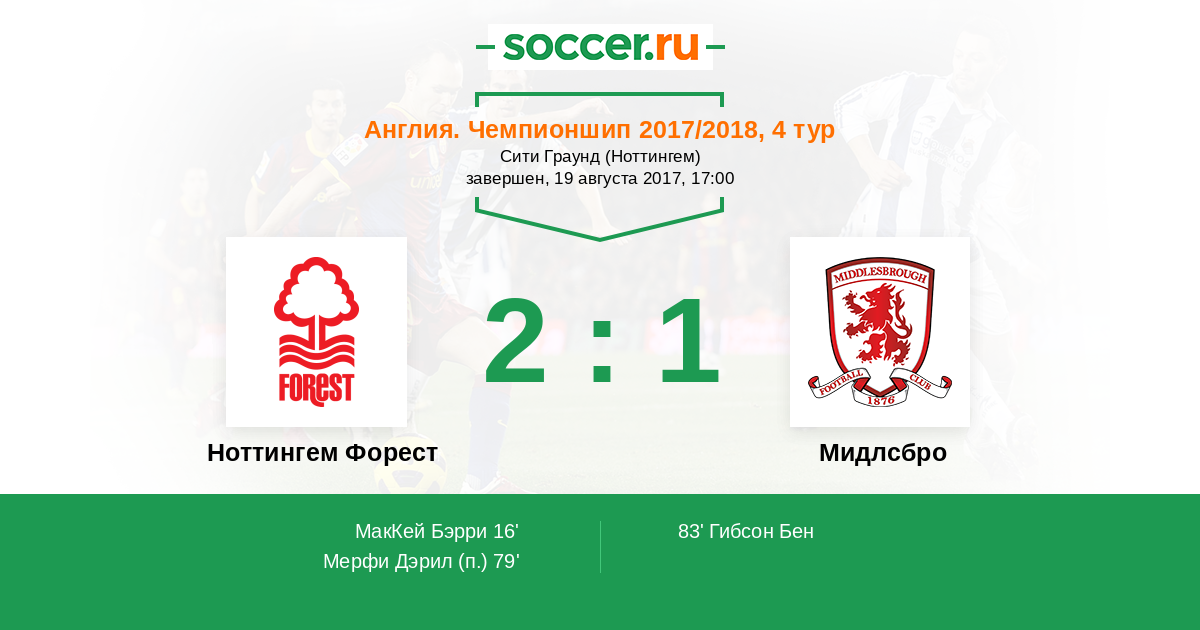 Ноттингем Форест - Мидлсбро: обзор матча 19 августа 2017