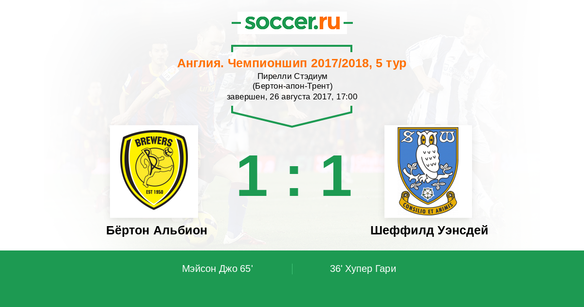 Бёртон Альбион - Шеффилд Уэнсдей: обзор матча 26 августа 2017