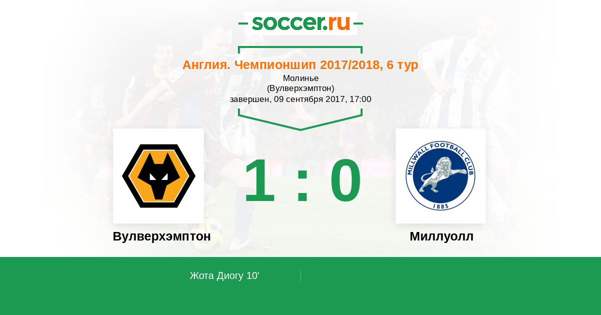 Вулверхэмптон - Миллуолл: обзор матча 9 сентября 2017
