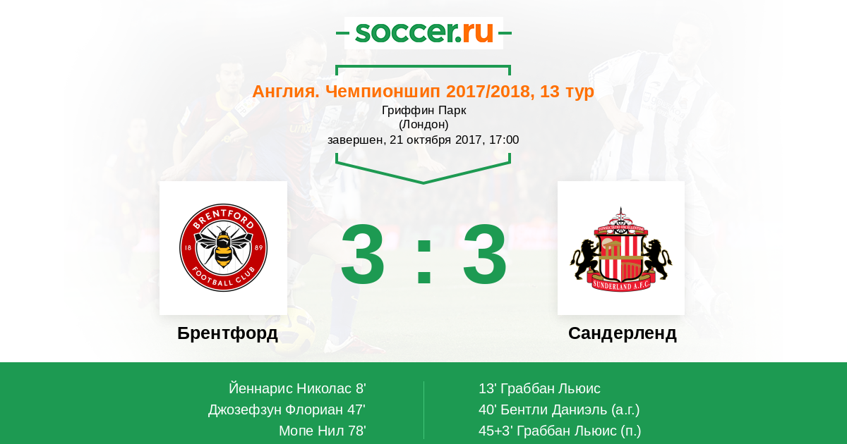 Брентфорд - Сандерленд: обзор матча 21 октября 2017