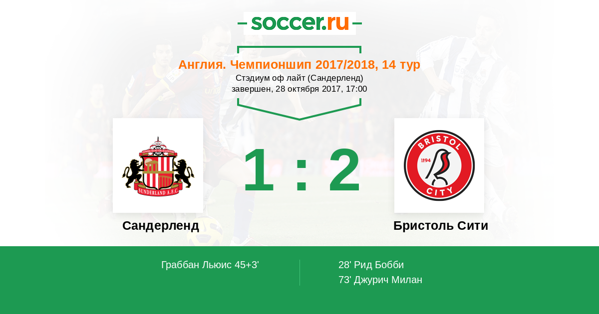 Сандерленд - Бристоль Сити: обзор матча 28 октября 2017