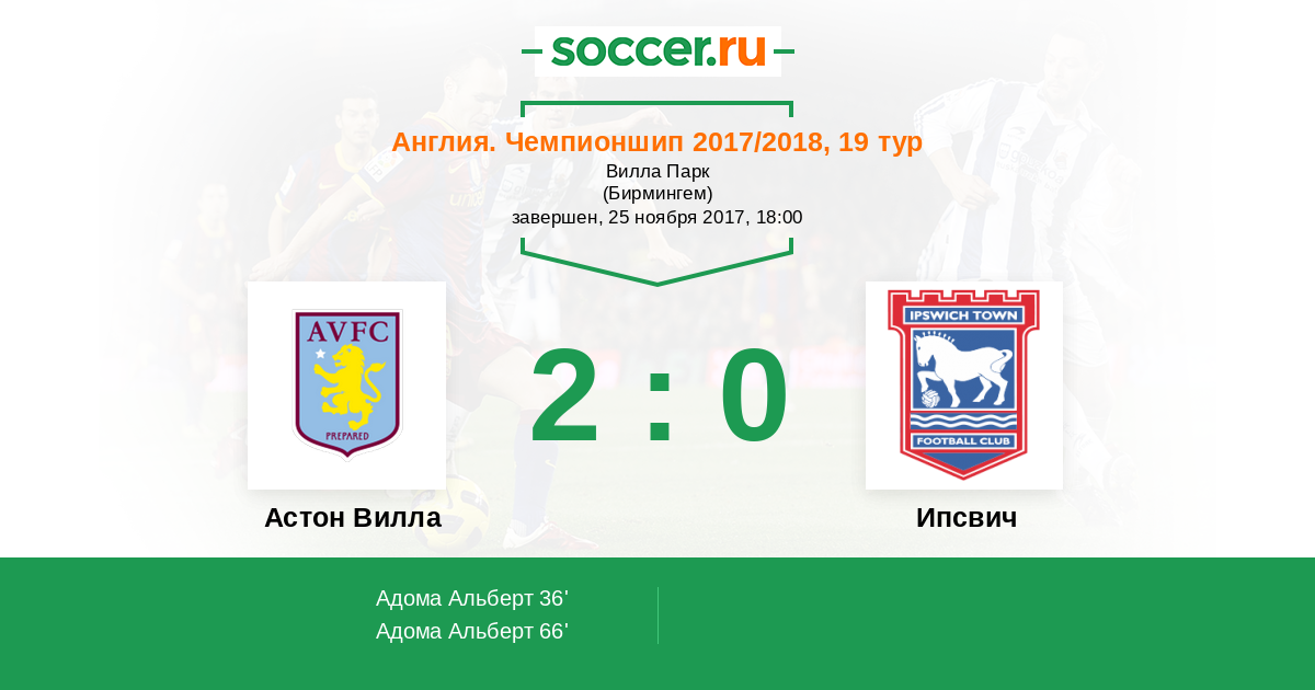 Астон Вилла - Ипсвич: обзор матча 25 ноября 2017