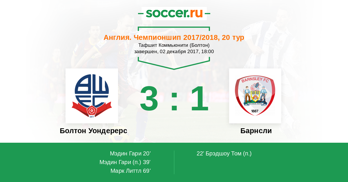 Болтон Уондерерс - Барнсли: обзор матча 2 декабря 2017