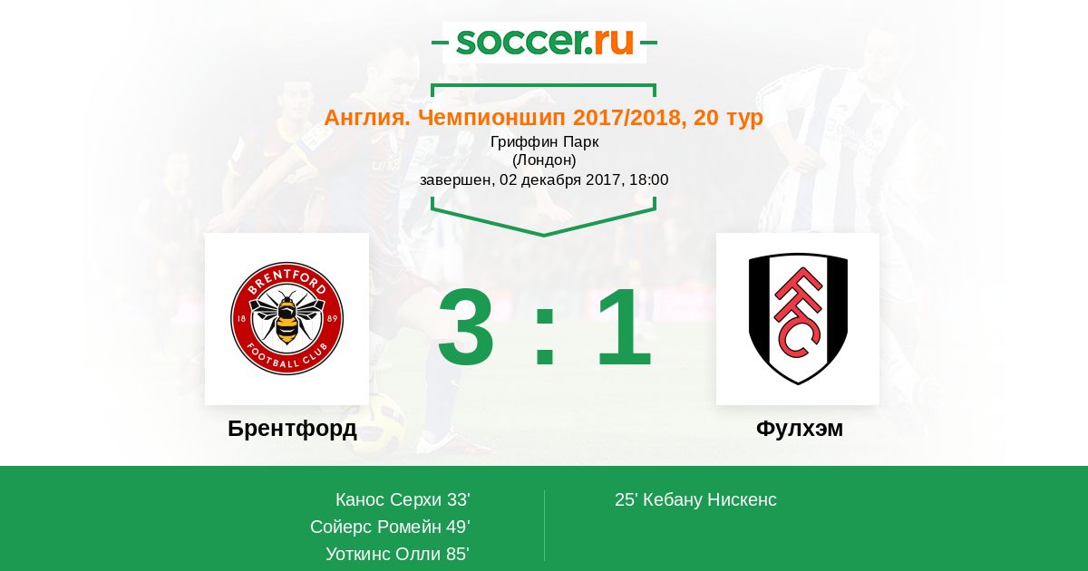 Брентфорд - Фулхэм: обзор матча 2 декабря 2017