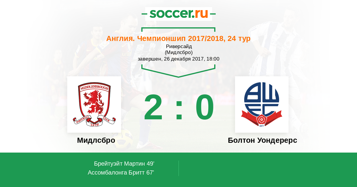 Мидлсбро - Болтон Уондерерс: обзор матча 26 декабря 2017