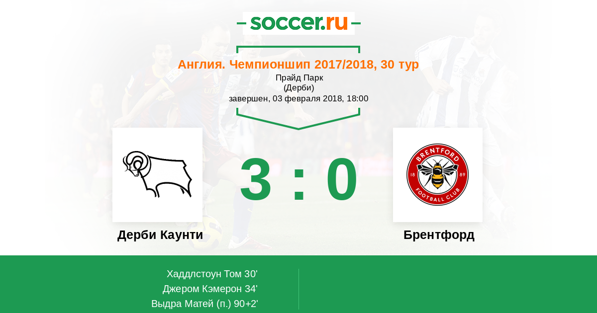 Дерби Каунти - Брентфорд: обзор матча 3 февраля 2018