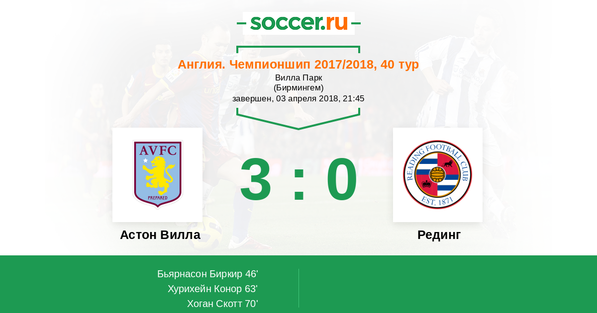 Астон Вилла - Рединг: обзор матча 3 апреля 2018