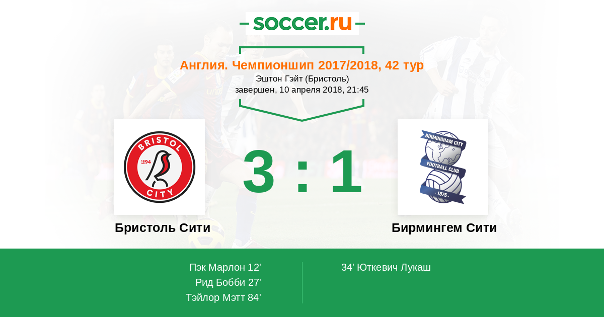 Бристоль Сити - Бирмингем Сити: обзор матча 10 апреля 2018