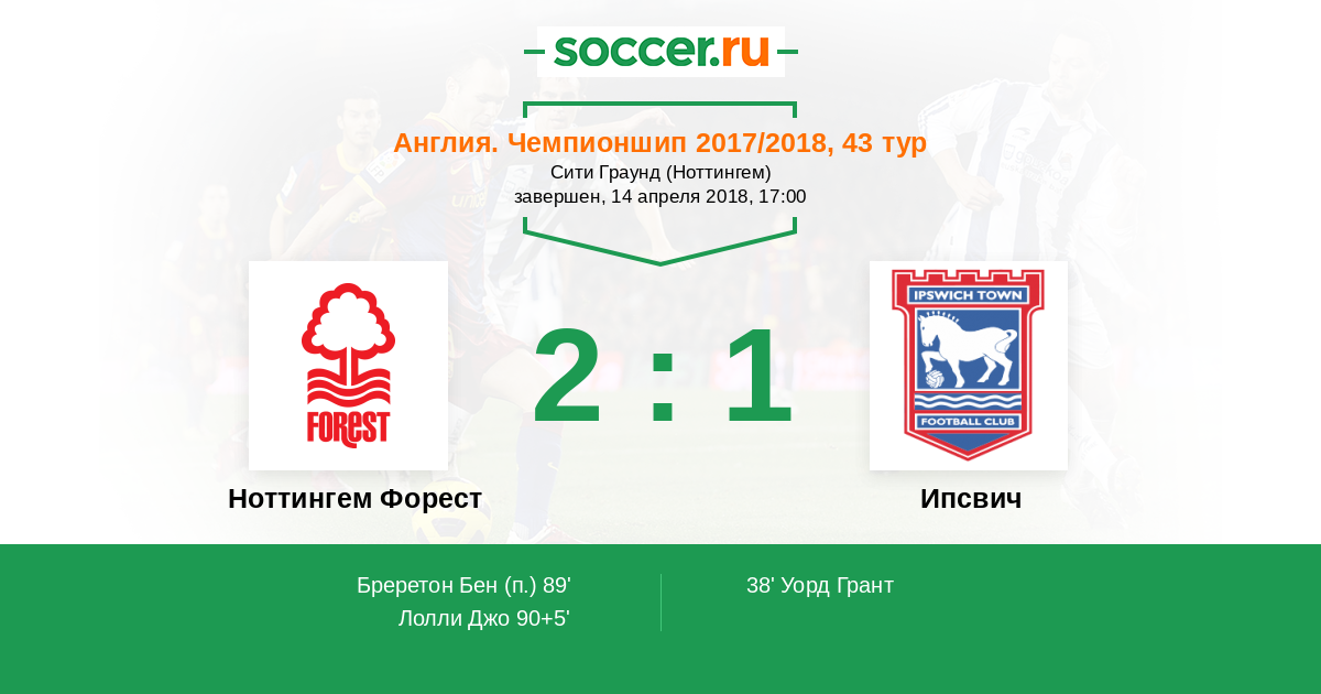 Ноттингем Форест - Ипсвич: обзор матча 14 апреля 2018