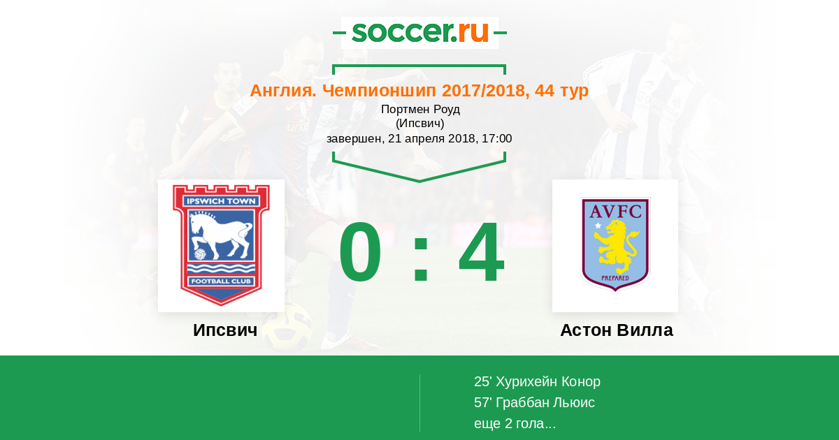 Ипсвич - Астон Вилла: обзор матча 21 апреля 2018
